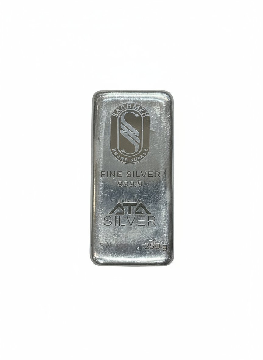 شمش ساچمه خانه عبار ۹۹۹.۹ شمش نقره برند ساچمه خانه محصولی استاندارد با عیار ۹۹۹.۹ تحت لیسانس امارات و دارای سرتیفیکیت بین المللی اصالت و خلوص است. این شمش ها انتخاب اول سرمایه گذاران حرفه‌ای هستند.